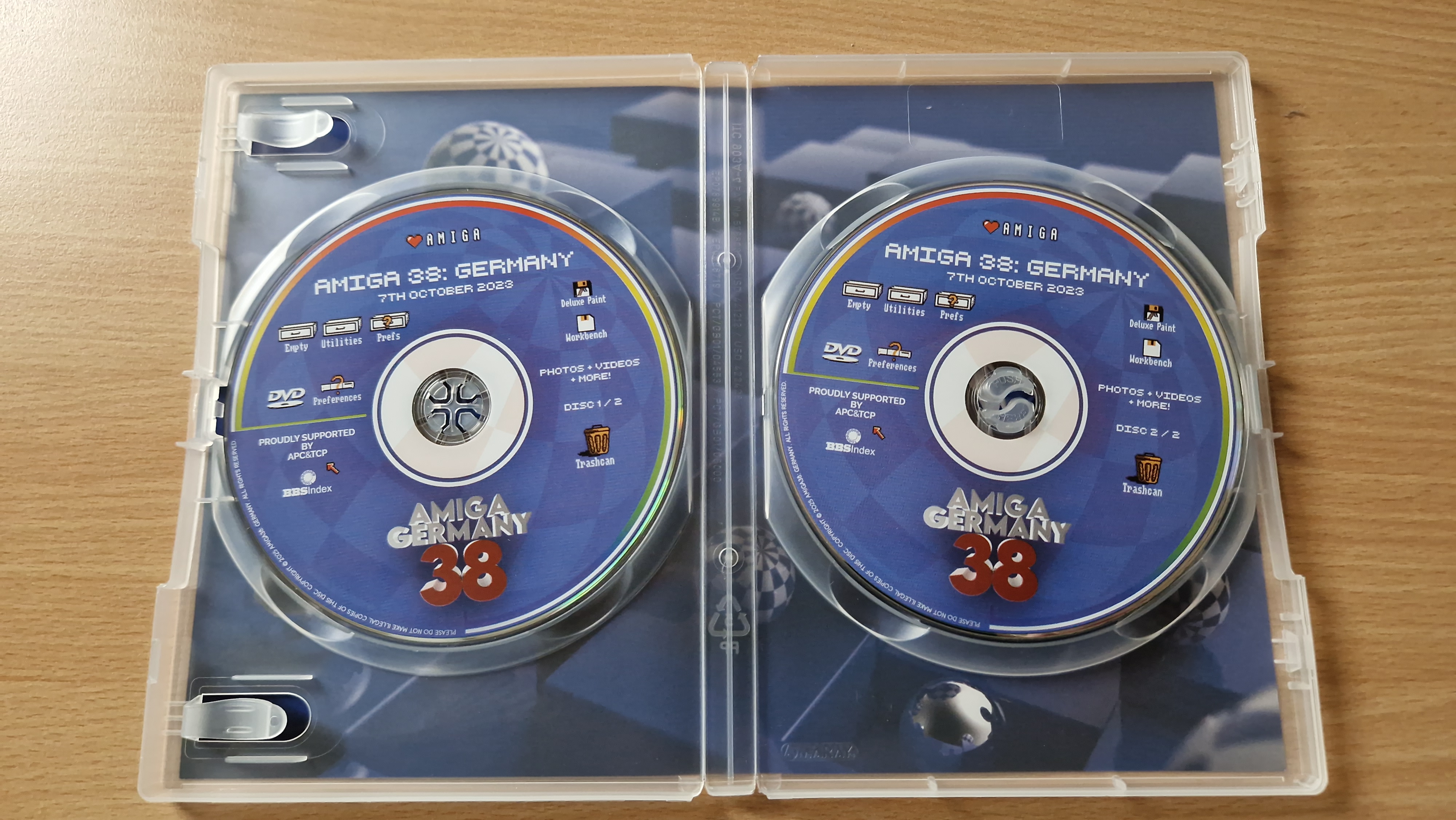 The Amiga38 DVDs release is actually two (2) pressed data DVD9 discs with the following content: